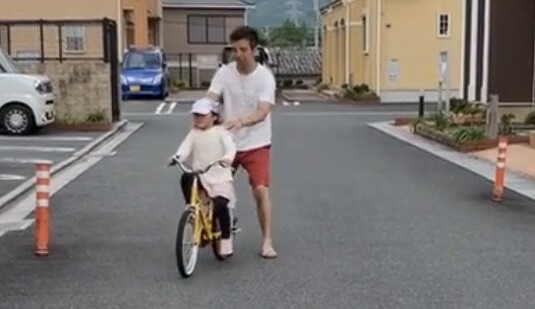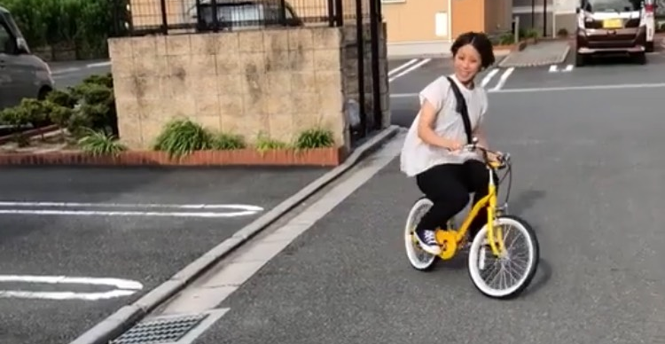 何度か転倒してしまい、長女が泣いてしまった時もありました。そんな時は無理に続けさせず、一旦休憩です。そして、ママが体の大きさに合っていない小さな自転車に、歌を歌いながら乗って見せました。その姿を見た長女は、笑いながら涙が止まり、笑顔に変わりました。「ママでも乗れるようになったんだから、〇〇(長女の名前)も絶対に乗れるようになるよ!」と声をかけると、再び練習を始めました。